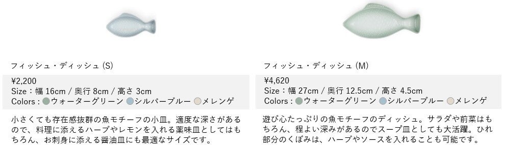 2022年は大人気の「フィッシュ・ディッシュ」に加え、新たにヒトデをモチーフにした「スターフィッシュ」のプレートとディッシュ(S)をラインナップ。カラーも昨年の大人可愛いパステルカラーから、より落ち着いた色調のヒーリングカラーに刷新し、穏やかでリラックスしたリゾート感あふれるダイニングシーンをご提案します。特別な料理でなくても、盛り付けるだけで癒しのリゾート気分が味わえる、そんな贅沢なサマーダイニングをご家族やご友人など大切な方々と一緒にお楽しみください。ご自分へのご褒美はもちろん、お世話になった方へのサマーギフトにもおすすめです。