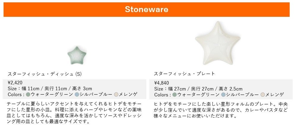 【ストーンウェア】 重ね使いが楽しい、新デザイン「スターフィッシュ」が登場
