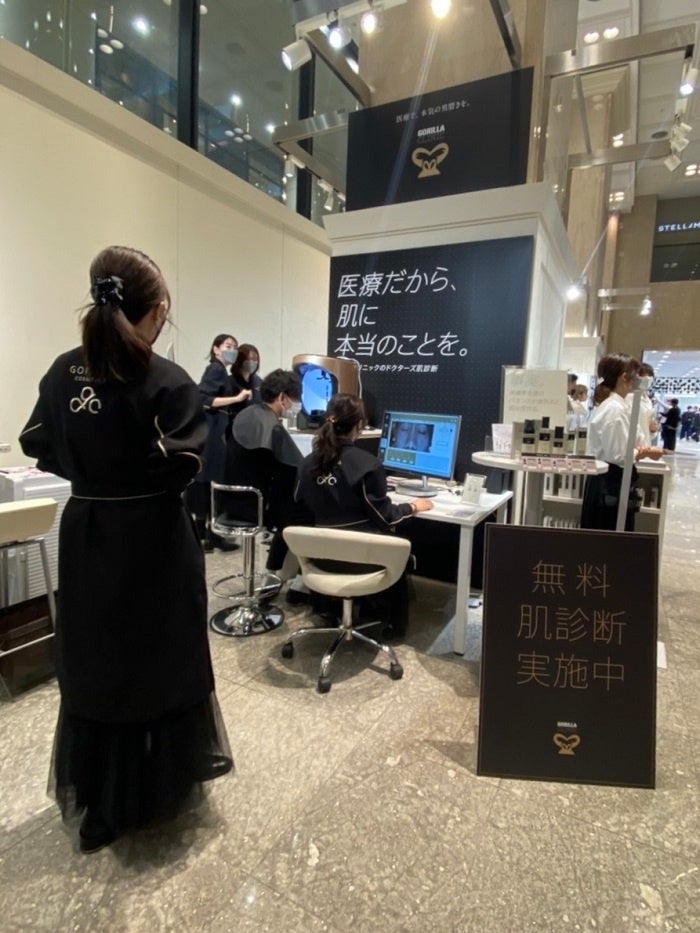 さらには、2022年1月からこの1年間で百貨店をはじめとする全国10拠点でポップアップストアを出店。実店舗販売では全ラインナップの試用はもちろん、当院のカウンセラースタッフによる「無料の肌診断」を実施しています。