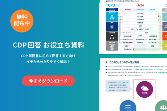とお悩みの方に向けて、本資料ではCDP質問書に回答する上で必要な概要やメリット、また回答企業の社内体制構築など初回答までの取り組み事例を紹介いたします。サステナビリティ担当の方々にお役立ていただける情報をまとめておりますので、是非以下URLから資料をお申し込みくださいませ。
