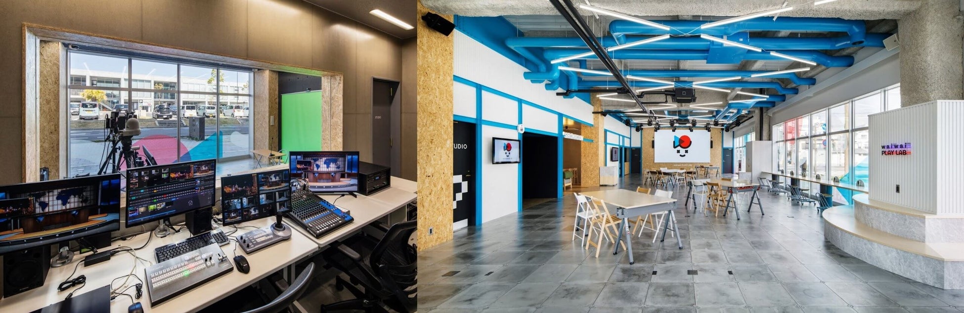 waiwai PLAY LABは、“動画エンターテインメントを拡張するTechnology×Movieラボスペース“をコンセプトに、 動画制作をメインに「Technology」「Entertainment」「Education」の要素を取り入れ、 先端テクノロジーや動画エンターテインメントで遊べる・学べる・発信・交流できる機会を提供するオープンスペースです。