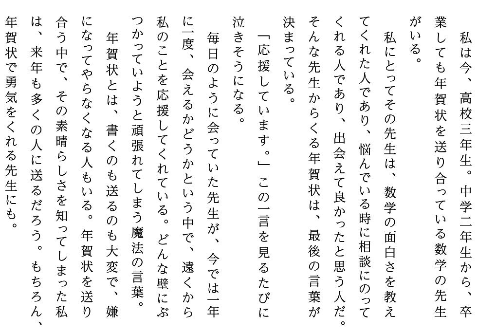 ■先生から届いた応援年賀状のエピソードが大賞を受賞