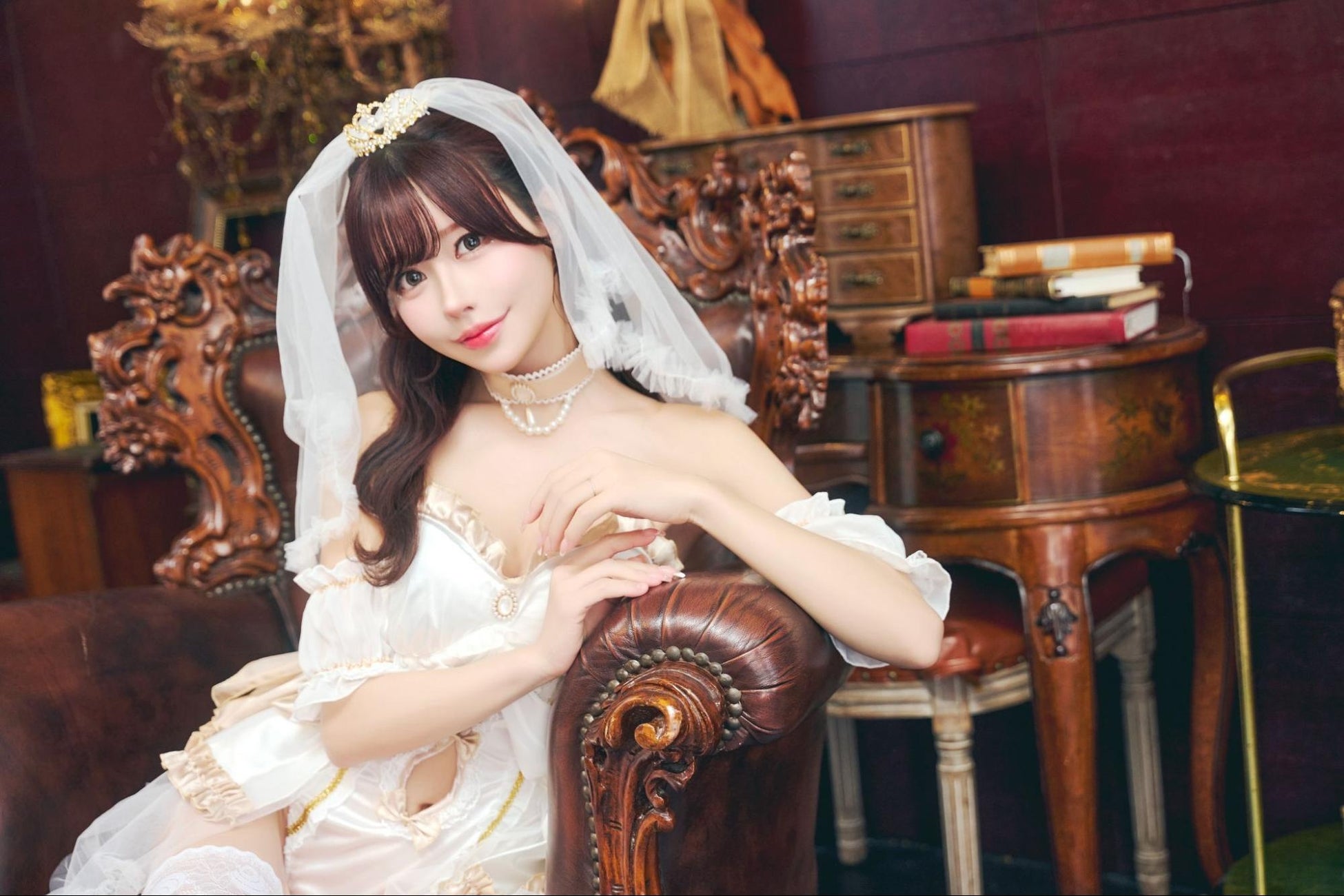 猫耳付きのベールが特徴的な、ランジェリータイプのコスチューム。セクシーな花嫁姿を演出したい方におすすめです。
