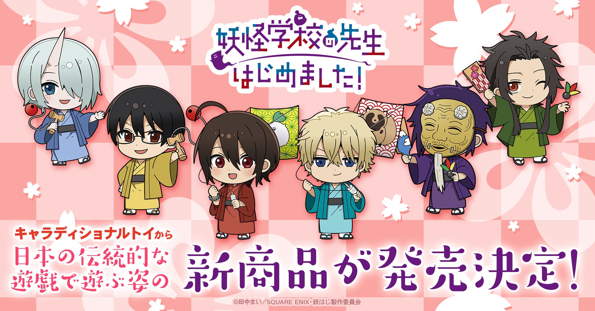 キャラクターと伝統要素の融合をテーマにしたブランド「キャラディショナルトイ」は、TVアニメ「妖怪学校の先生はじめました!」のキャラクターたちが日本の伝統的な遊戯で遊ぶ姿を描き起こした新規イラストの新商品を発売いたします!