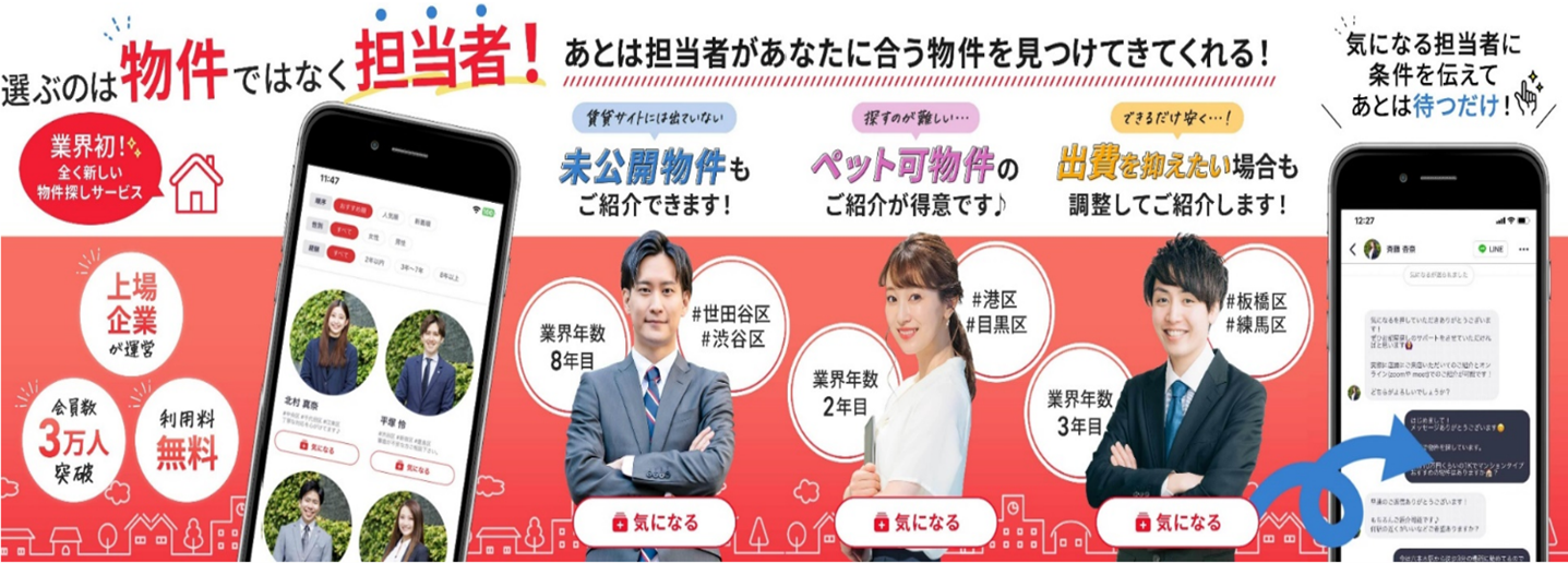 お部屋探しユーザーと不動産営業マンを繋ぐマッチングアプリ