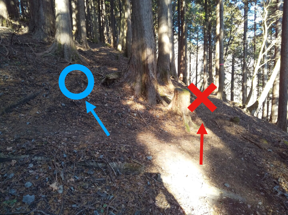 神奈川県の丹沢山、櫟山〜栗ノ木洞に位置する登山道です。左右に登山道がありますが、正しい登山道は「左」です。