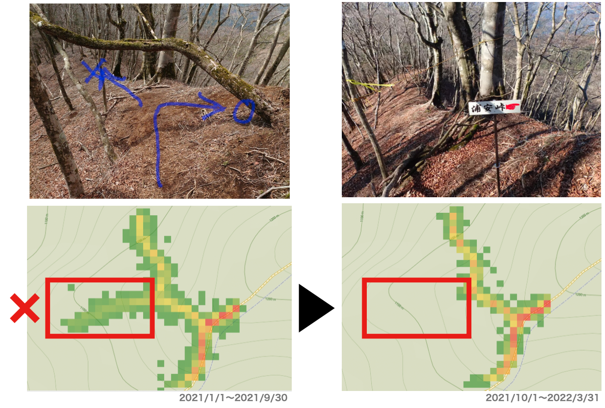 登山地図GPSアプリ「YAMAP」を運営する株式会社ヤマップ(福岡市、代表取締役CEO 春山慶彦、以下ヤマップ)は、昨年(2021年8月)「日本一道迷いしやすい登山道」として、日本全国5箇所の登山道を抽出・発表しました。このうち、道迷い多発地点に標識が設置された、神奈川県の2事例についてデータを検証したところ、大界木山(だいかいぎやま)で、道迷いがゼロになったことをご報告いたします。