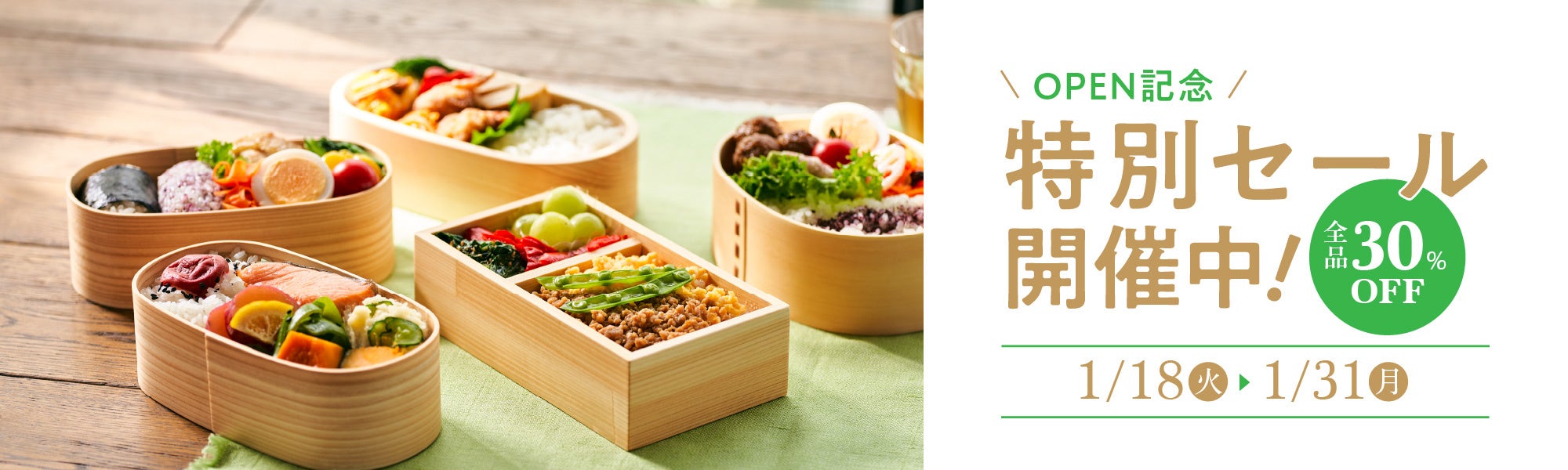 日本国内で製造された『曲げわっぱ』や天然木材を使用したお弁当箱を中心に取り揃えています。お得なこの機会にぜひご利用ください。