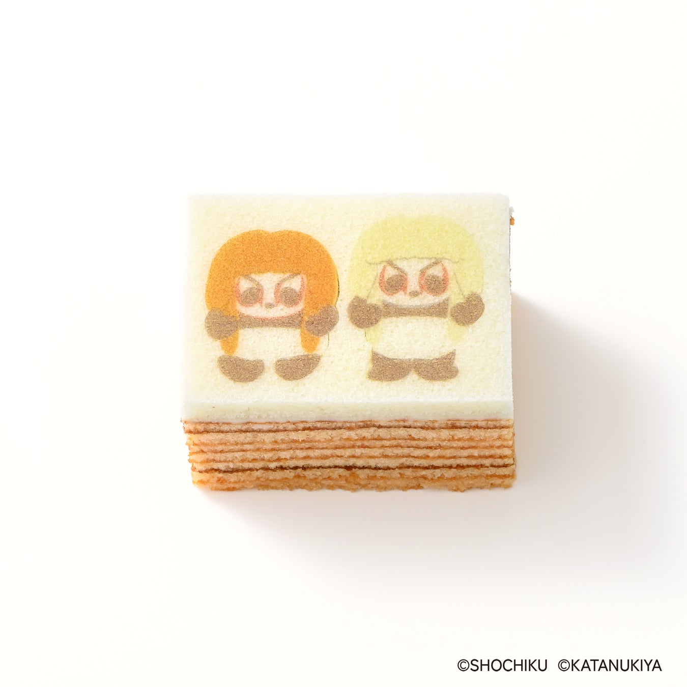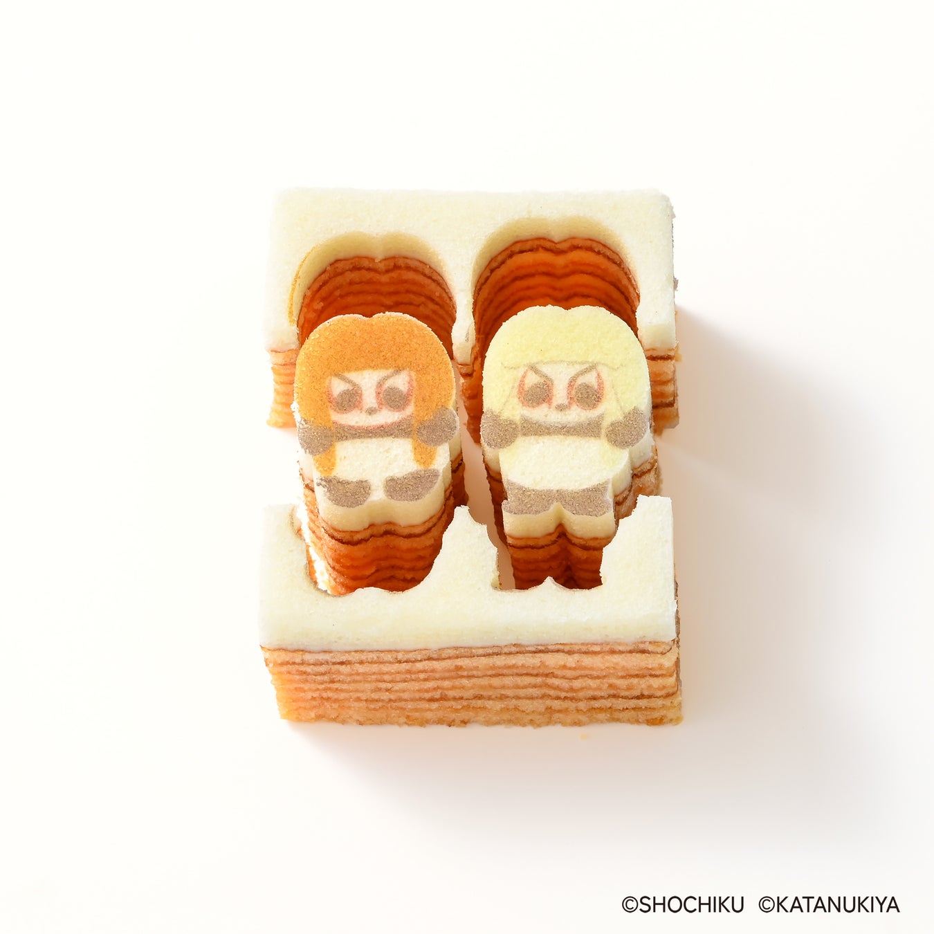 しっとりと焼き上げたバウムクーヘンに卵白仕立ての白いパウンド生地を重ね、その上に絵柄をプリントしたお菓子。デザイン部分には型ぬき加工が施されており、線に沿って絵柄をくり抜くことができる。おいしさと、遊び心あふれる体験を同時に楽しめる、新しいスタイルのバウムクーヘン。