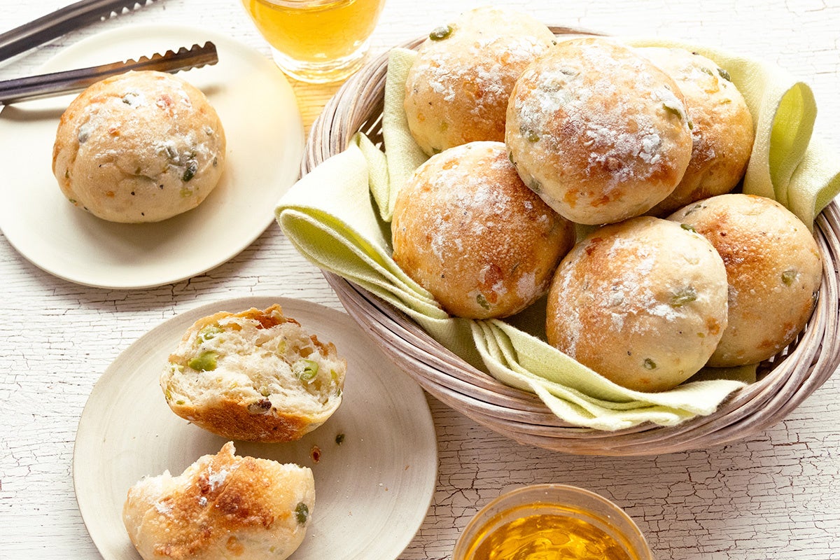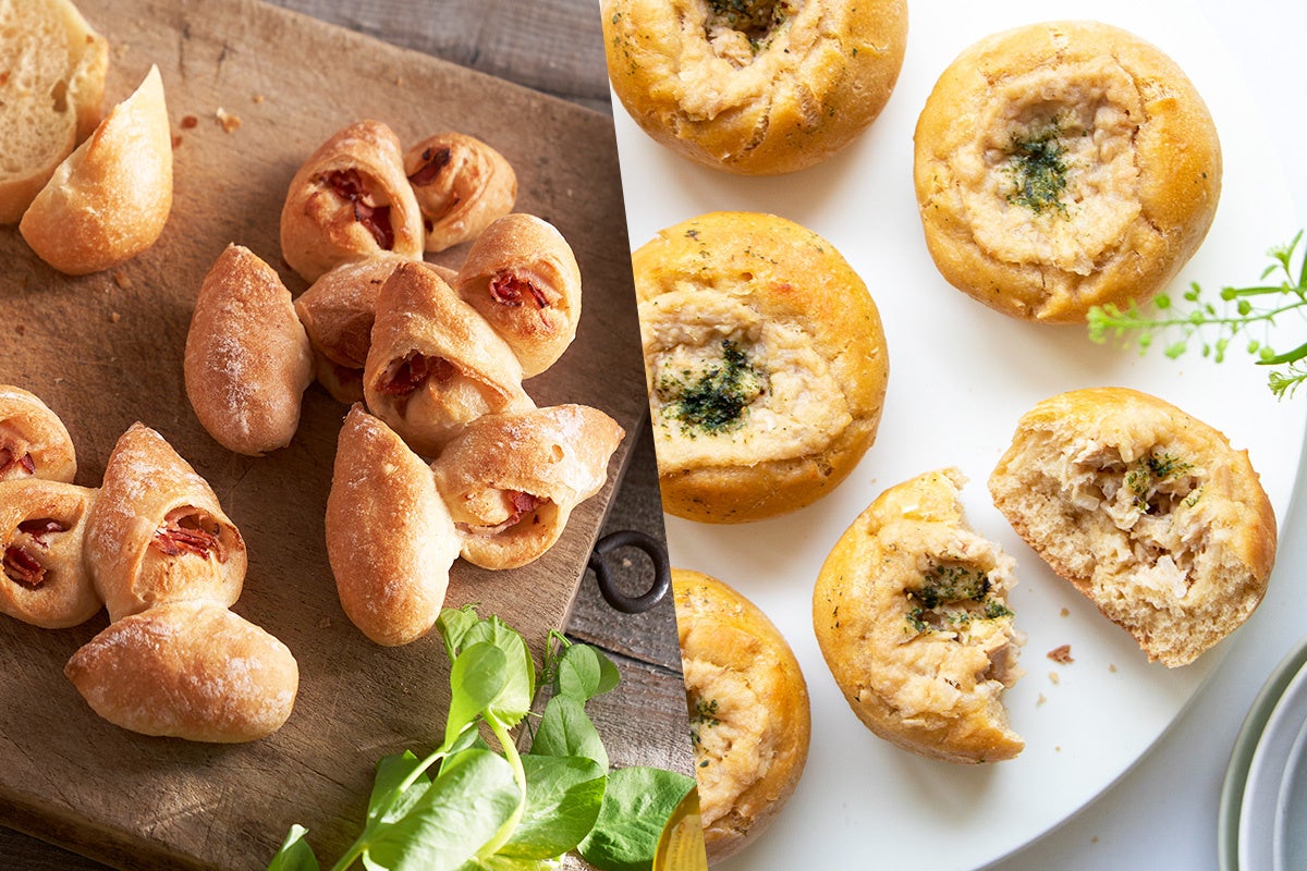 特長:オリーブオイルを使用しているため香りが良く、あっさりとした口当たり。具材の食感や風味が楽しめる惣菜パンでありつつも、お料理やスープとも相性が良く、テーブルロール感覚でお召し上がりいただけます。