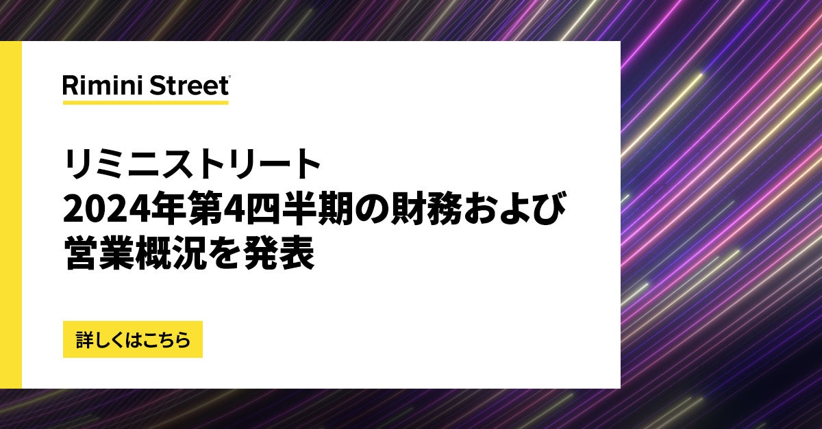(米国ラスベガス – 2025年2月27日) – エンタープライズソフトウェアのサポート、イノベーションソリューションをエンドツーエンドで提供するグローバル企業であり、Oracle、SAP、VMwareソフトウェアに対する第三者保守サービスの主要なプロバイダーであるRimini Street, Inc. (Nasdaq: RMNI)は、2024年第4四半期および2024年12月31日を期末とする会計年度の業績を発表しました。