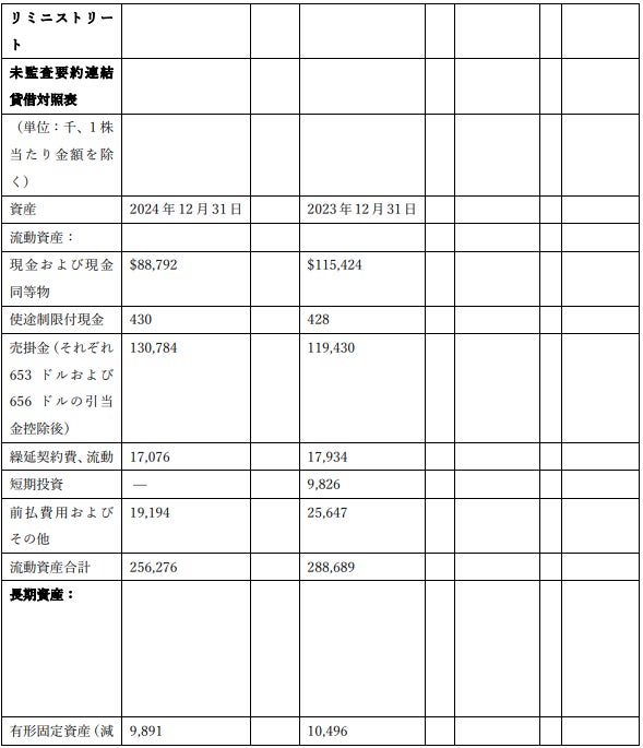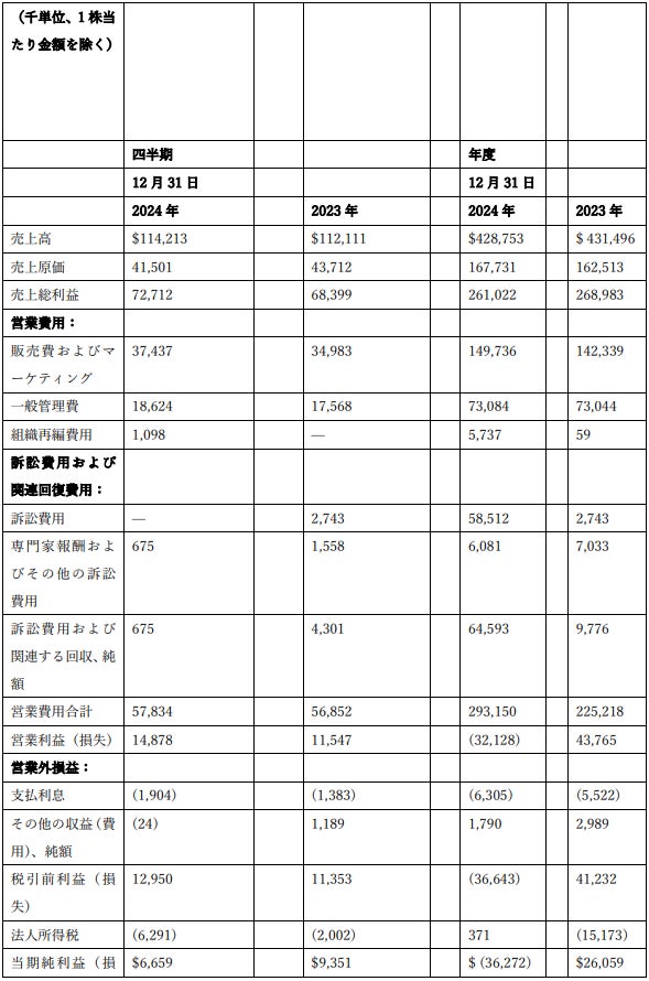 2024年第4四半期には、コスト構造の最適化プロセスを継続したことにより、110万ドルの組織再編費用が発生。