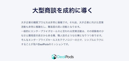 ■エンタープライズセールステック「DealPods」の新規公開機能
