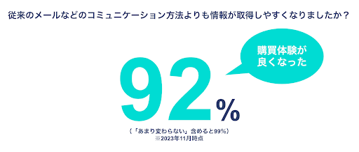 さらに買い手へのアンケートを実施し、従来のメールでの情報提供よりも情報が取得しやすくなったかという質問に対して、92%の顧客が情報を取得しやすくなったと回答頂きました。