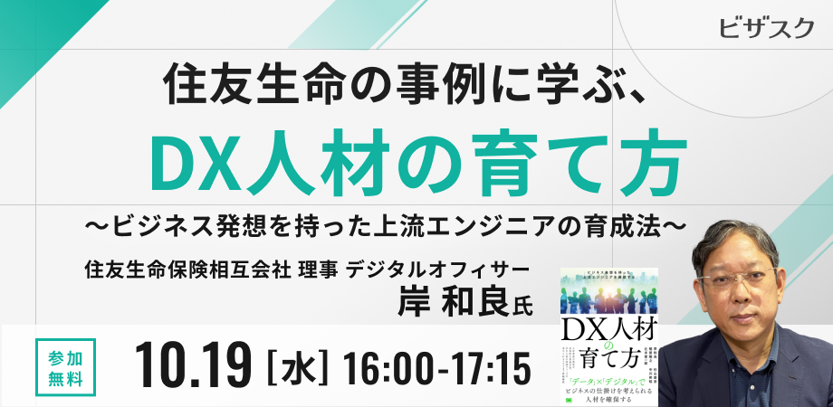 【10/19(水)16時】無料オンラインセミナー「住友生命の事例に学ぶ、DX人材の育て方〜ビジネス発想を持った上流エンジニアの育成法〜」を開催