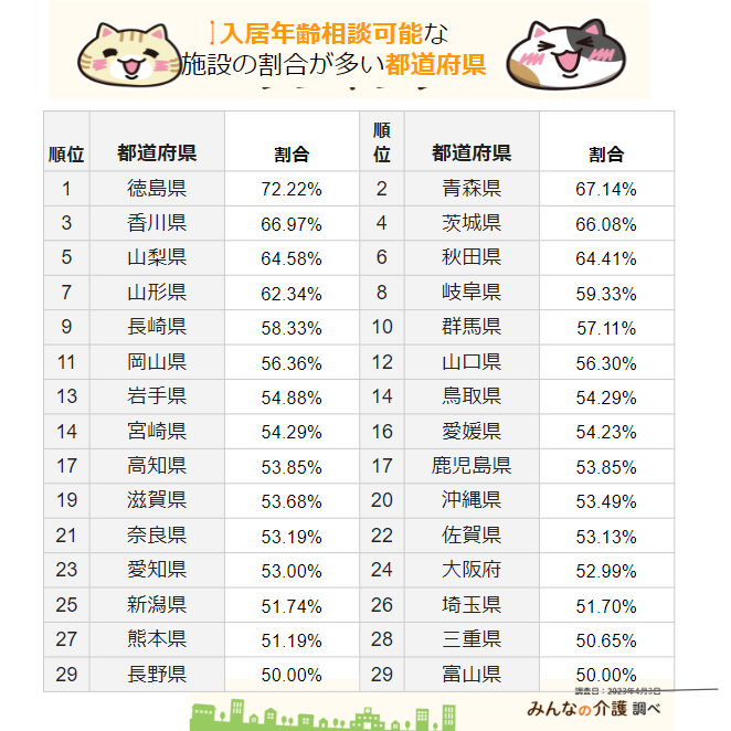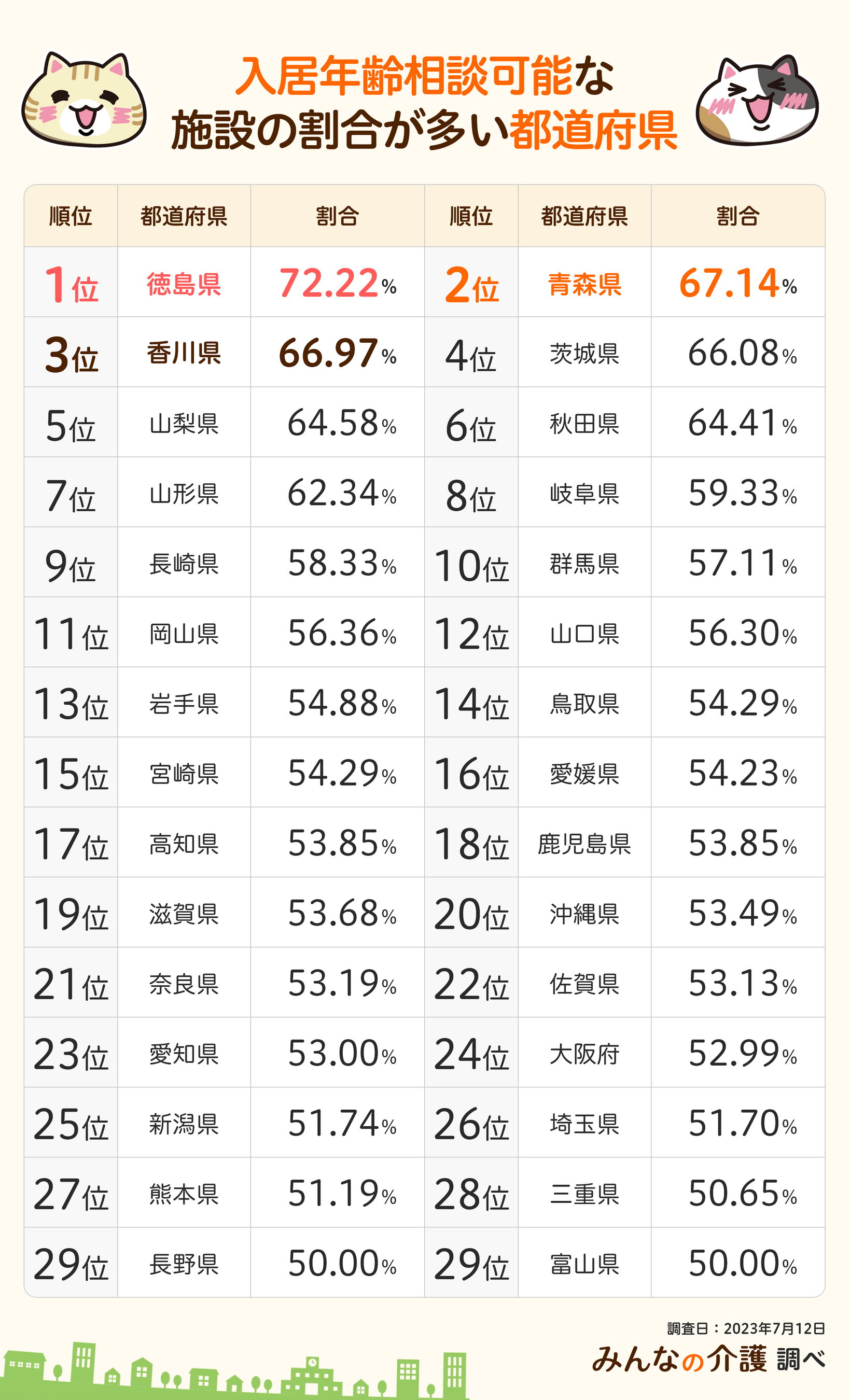 もっとも多い徳島県ではなんと7割の施設が「入居年齢相談可」としていました。