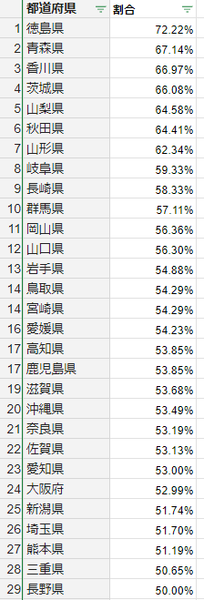 割合が50%を超えている都道府県をランキング順でご紹介します。