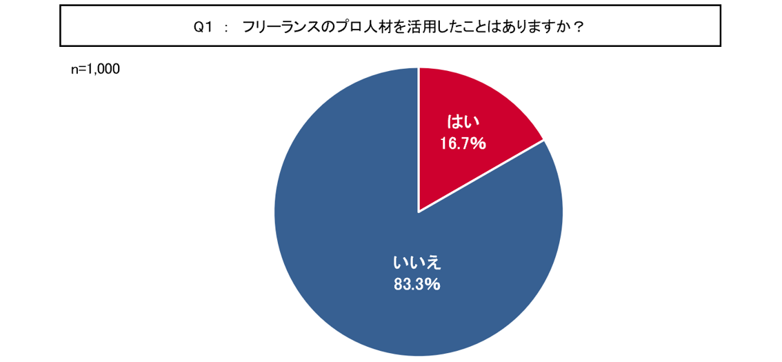 - フリーランスのプロ人材を活用した事がある大企業は16.7%であった。