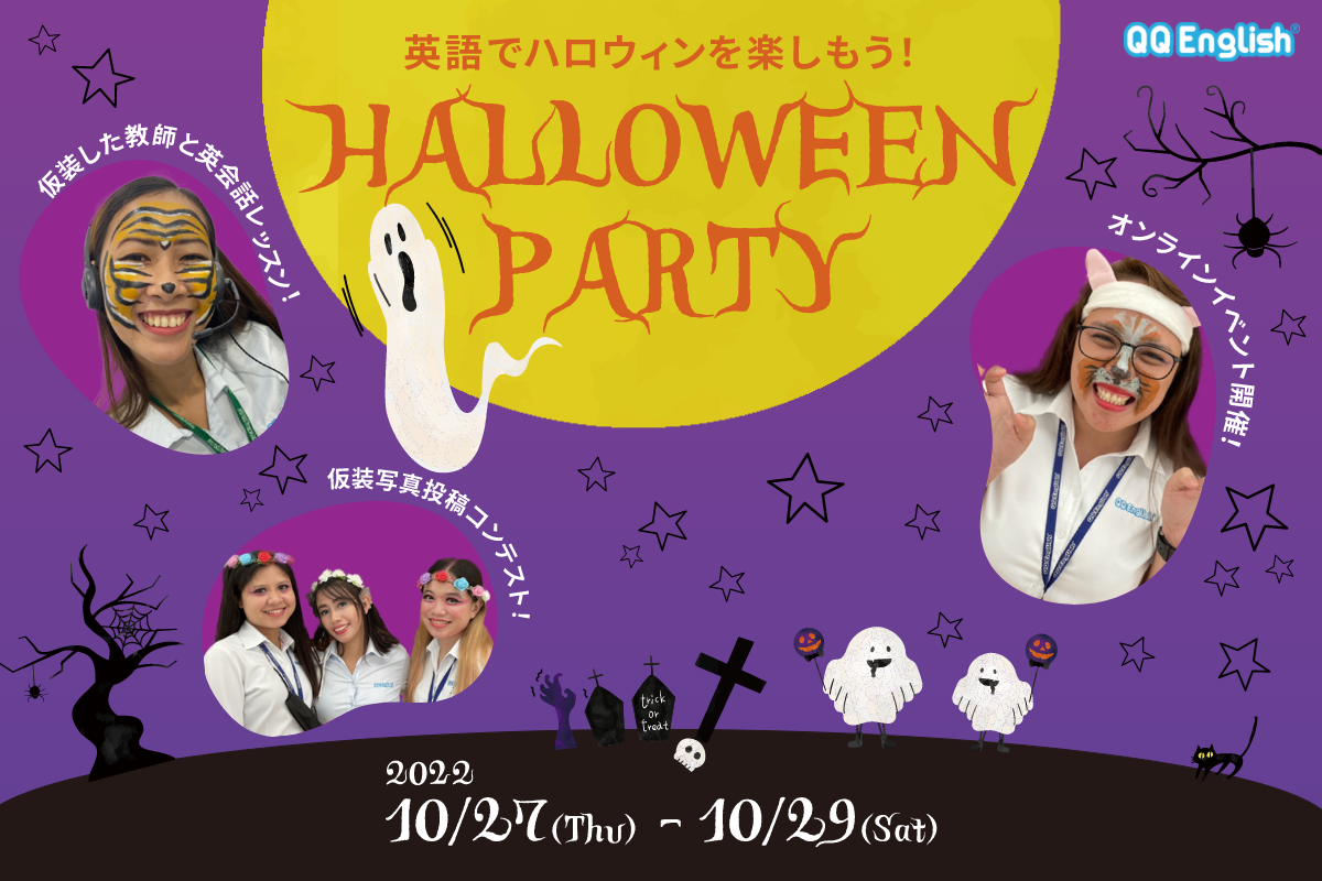QQ Englishでは、ハロウィンを英語で学び・楽しんでいただける特別企画「HALLOWEEN PARTY」を実施いたします。
