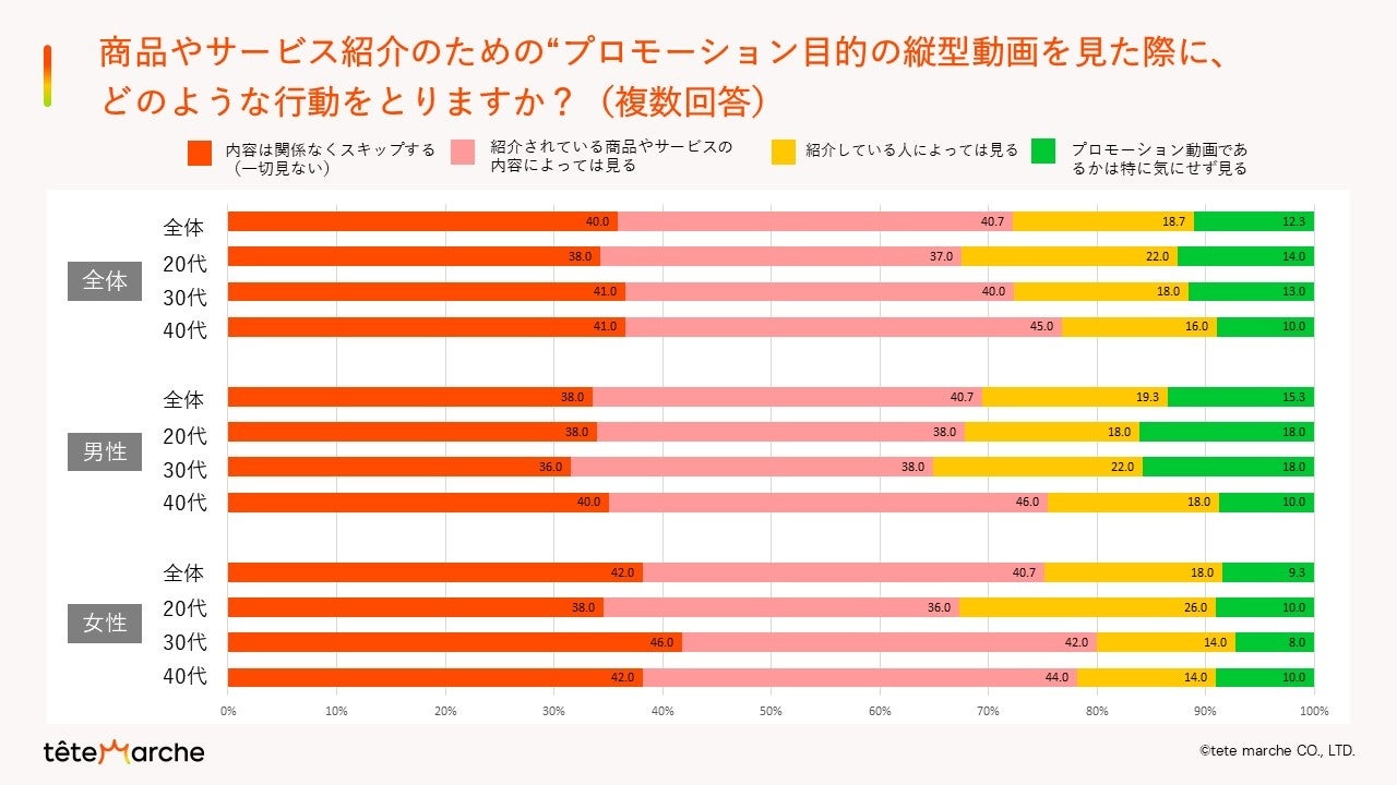- 商品やサービス紹介のための“プロモーション目的の縦型動画を見た際に、どのような行動をとりますか?(複数回答)