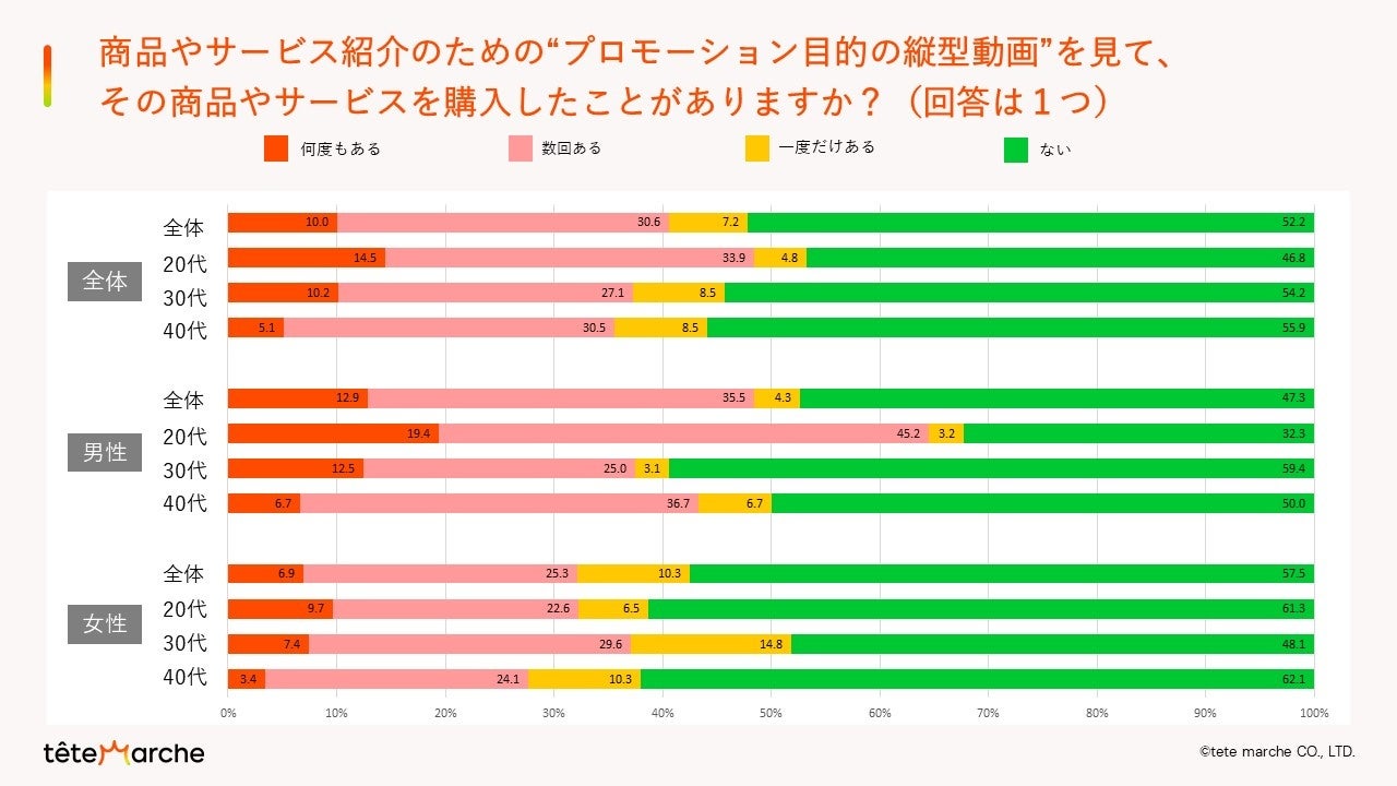 - 商品やサービス紹介のための“プロモーション目的の縦型動画”を見て、その商品やサービスを購入したことがありますか。(回答は1つ)