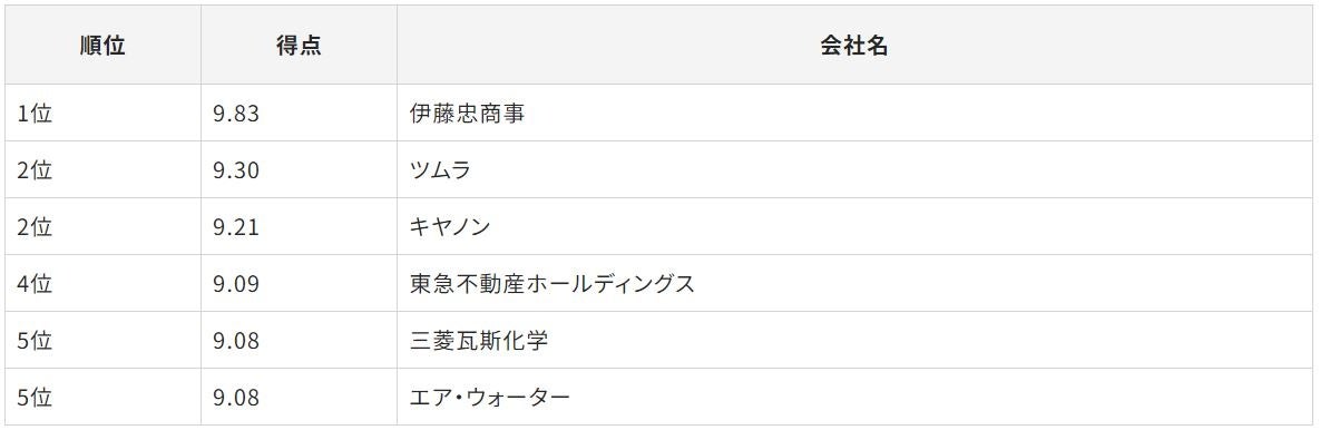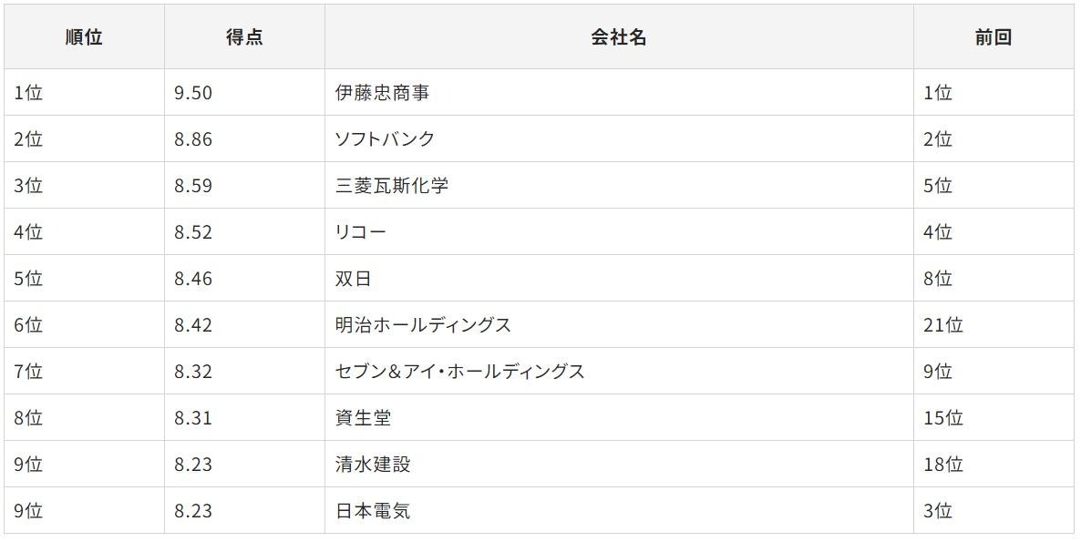 ~「伊藤忠商事」が4年連続で総合第1位を獲得!~