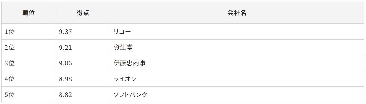 「Gomez ESGサイトランキング2024」上位10社は、次の通りです。なお、上位10社は「ESGサイト最優秀企業」に選定されます。