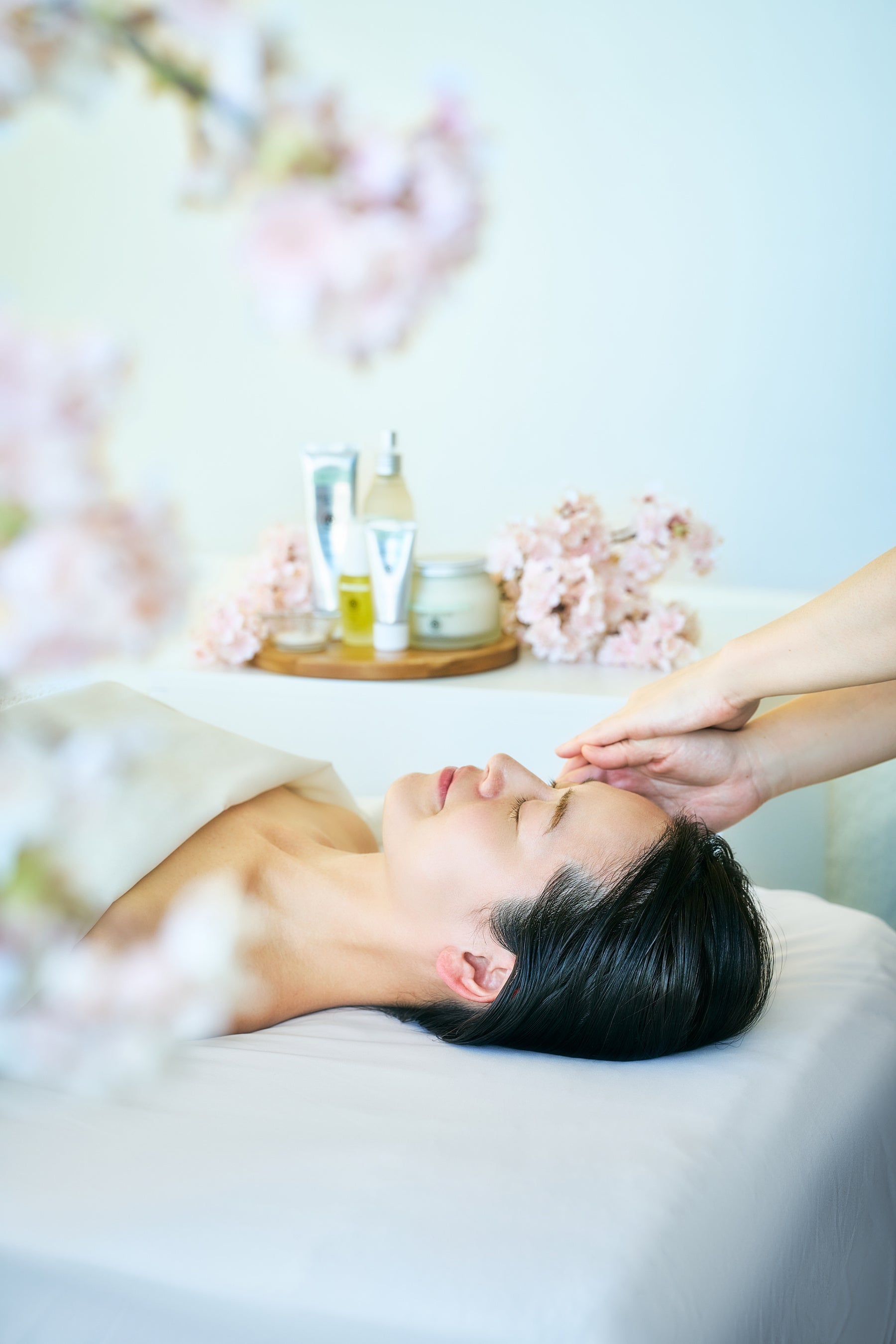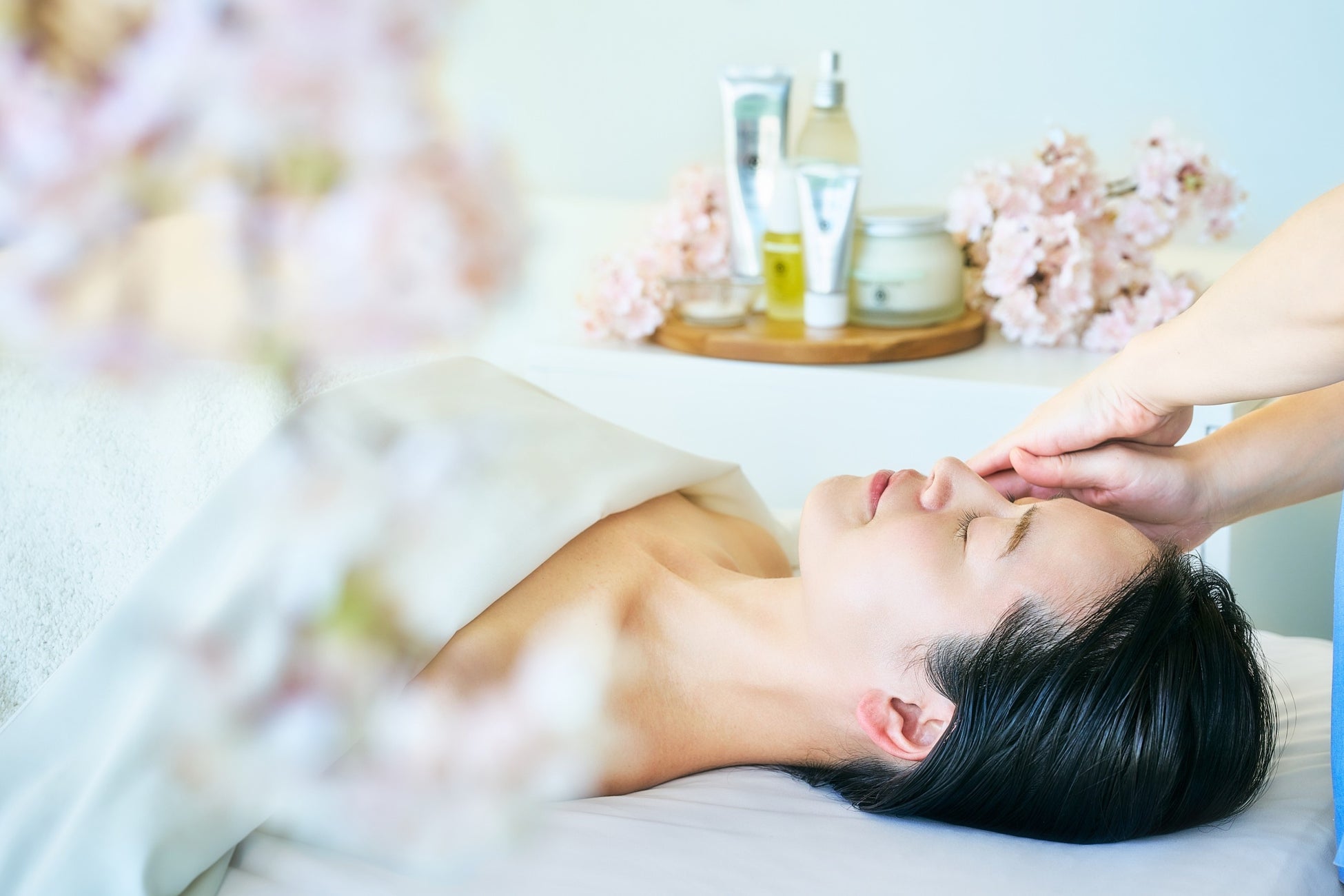トリートメントは、血行を促進する、桜の塩漬けを用いたフットバスからスタート。心身をゆるやかに解きほぐした後、背中へのディープティシューマッサージでリンパの流れを整え、疲労や緊張を和らげます。フェイシャルでは、クレンジングからマスク、スウェディッシュテクニックによるマッサージまでを丁寧に行い、巡りを高めながらすっきりとした印象へ。上半身を集中的に整えることで、春を軽やかに迎えるためにコンディションを整えます。移動やフライトによる疲れ、乾燥が気になる方にもおすすめです。