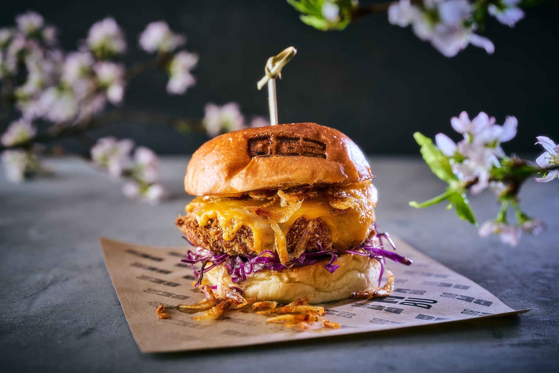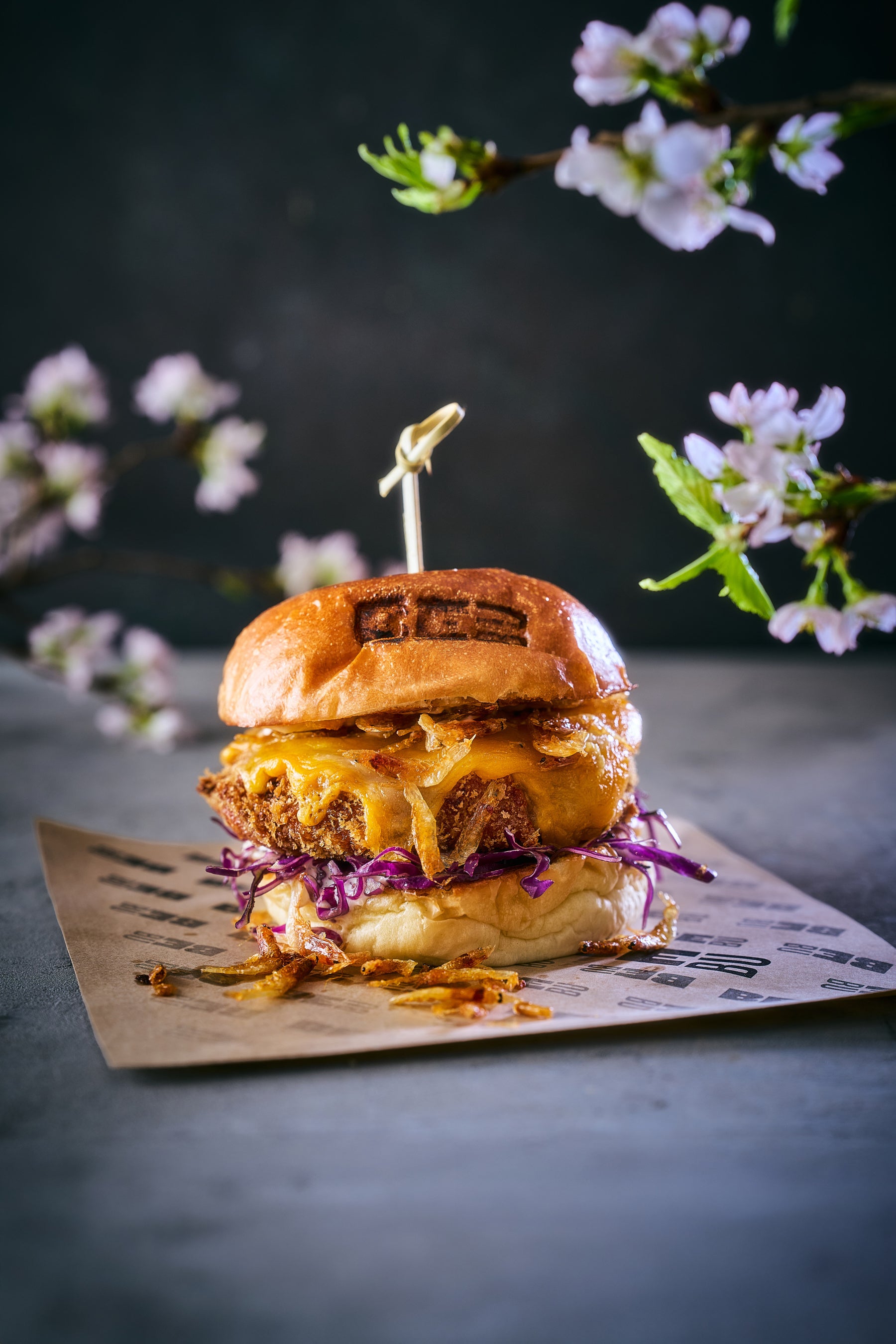 今春もBeBuでは、昨年ご好評をいただいた「桜海老カツバーガー」をご用意いたします。自家製の海老カツに香ばしく揚げた桜海老を重ね、豊かな旨味と食感を引き出した一品。桜の香りをまとわせたタルタルソースに、柚子胡椒の爽やかなアクセントを添え、春らしい軽やかな味わいに仕上げました。レッドキャベツのコールスローのシャキシャキとした食感と、レッドチェダーチーズのコクが全体をバランスよくまとめます。BeBuならではの自由なスタイルで、季節の味わいをお楽しみください。