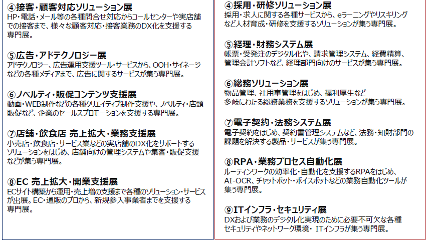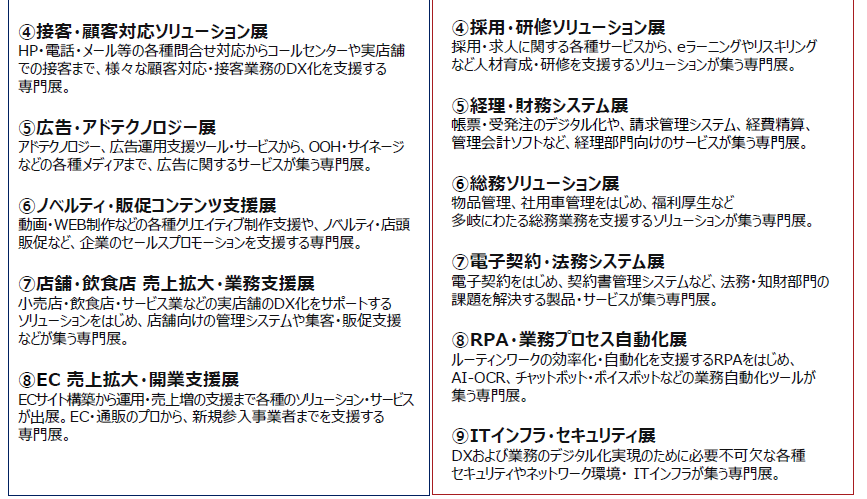 来場対象者は、あらゆる業種の経営層はもちろん、バックオフィス部門(総務・人事・労務・経理・財務・法務・情報システム等)の方々である。