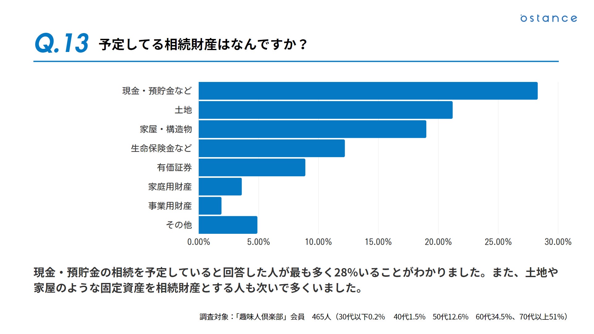 土地や家屋・構造物の相続を予定してる人は、現金・預貯金を相続財産とする人の次に多くいることがわかりました。それに次いで、生命保険金や証券を相続予定の人が多くなりました。