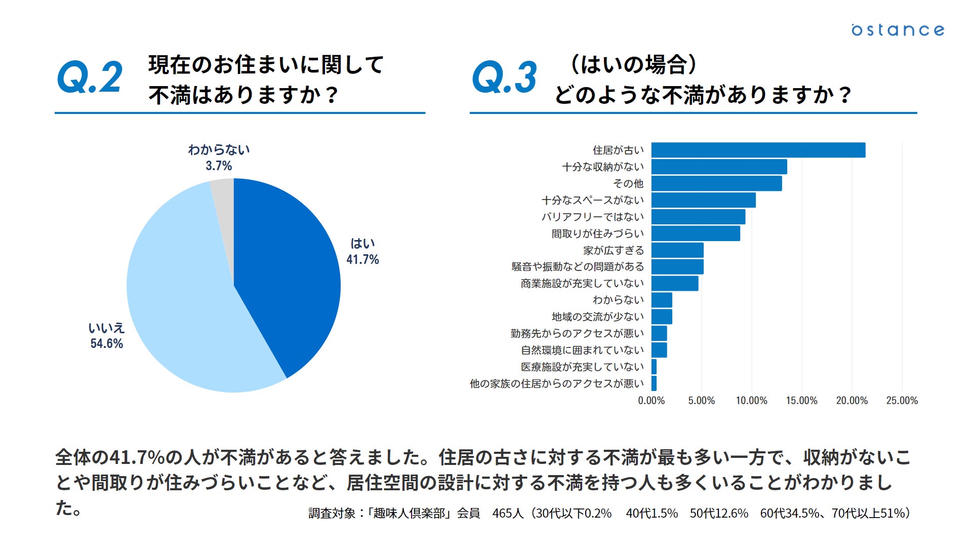 ■ 「住居の古さ」や、「収納がない」や「間取りが住みづらい」などの居住空間の設計に対する不満がある