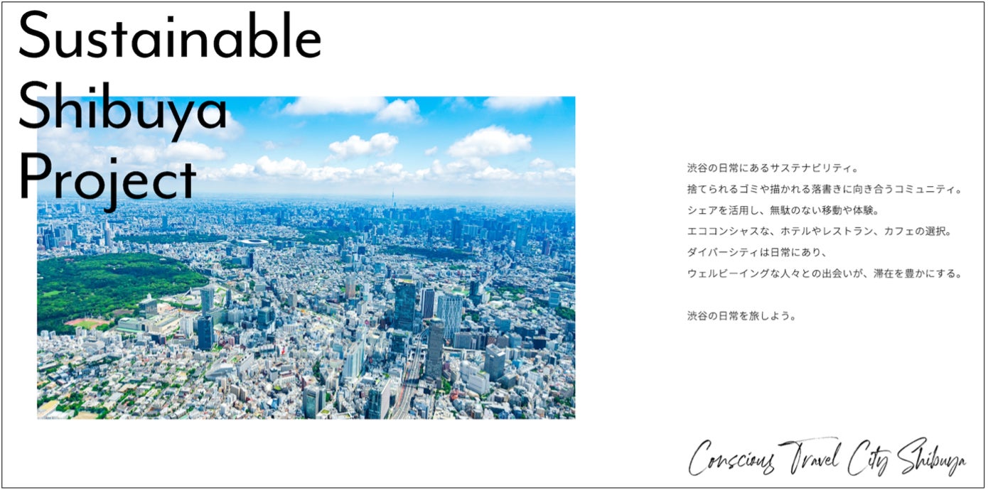 アフターコロナによる急速な回復機を迎え、観光客が国内外から押し寄せ渋谷が活気を取り戻しつつある一方で、来街者の増加は、観光客による混雑やマナー違反など「オーバーツーリズム」が顕在化し、課題となっております。渋谷区観光協会は、観光事業の振興を通して「国際文化観光都市・渋谷」の実現を掲げており、そのためにも「持続可能な観光(サステナブル ツーリズム)の実現」が不可欠となります。「Sustainable Shibuya Project」を推進し、地域のために、地域とともに、今できることとして、サステナブルな渋谷の滞在体験、取り組みを紹介することで、新たな観光のスタイルを提示するとともにConscious Travel Cityの実現を目指します。