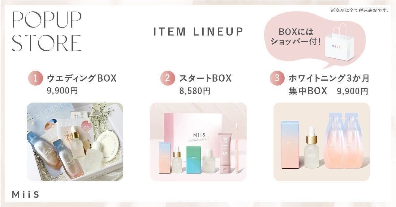 今回のPOP UP STOREでは、MiiSのメイン商品の他、ブランドで人気のオンライン限定セットBOXやオリジナルノベルティなど、この機会にしかご覧いただけない特別なアイテムを取り揃えています。
