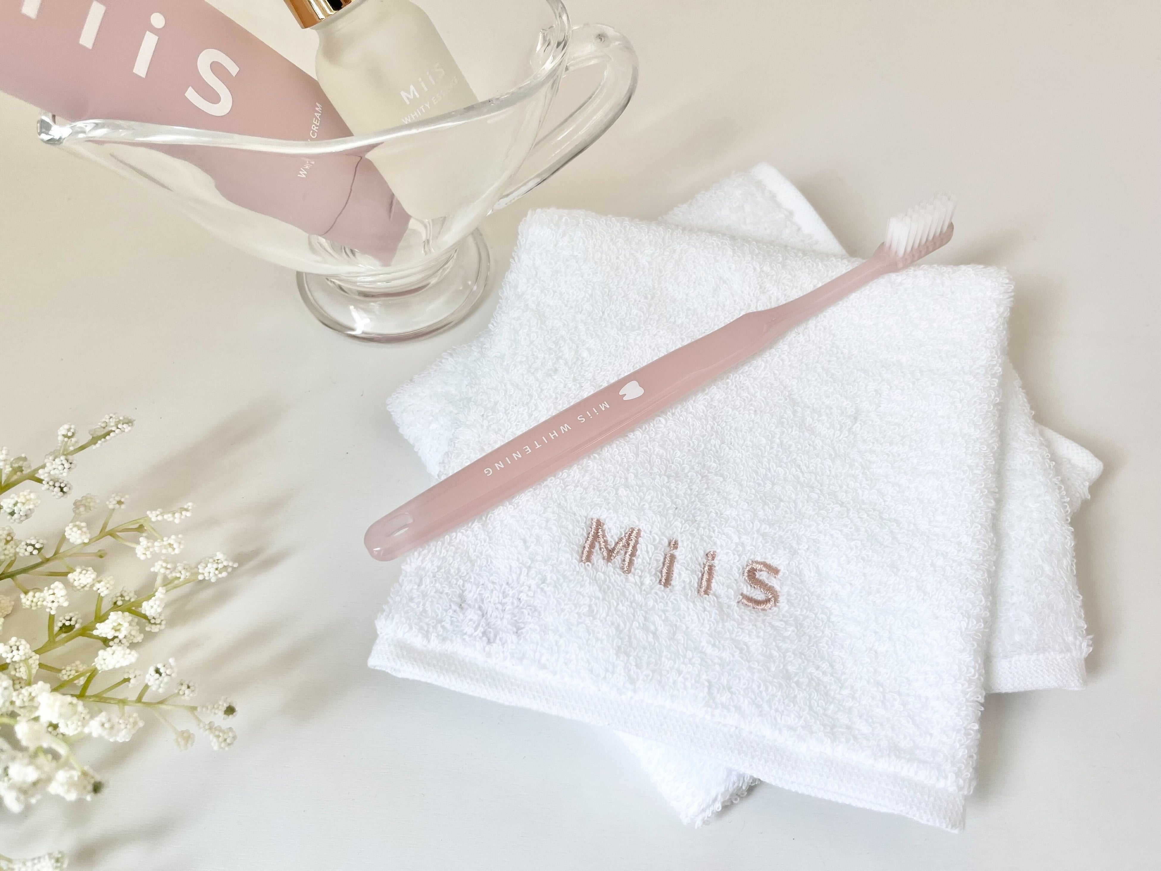 毎日のオーラル美容のお供としてご使用いただける、MiiSのロゴ刺繍入りのハンドタオルをご用意しました。