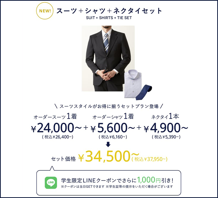 - (新登場)スーツ+シャツ+ネクタイセットプラン