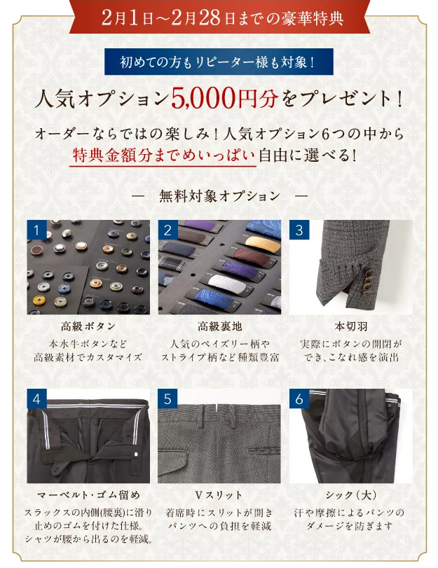 ・オーダースーツ1着:38,000円~(税込41,800円~)