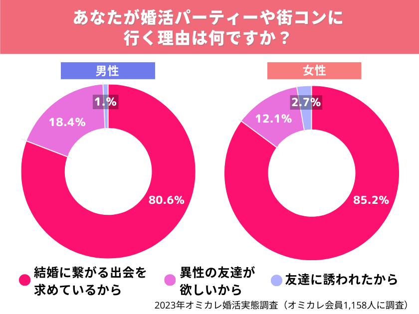 婚活パーティーや街コンで真剣婚活する人たちに焦点を当てた、今回のオミカレ婚活実態調査はいかがでしたか??