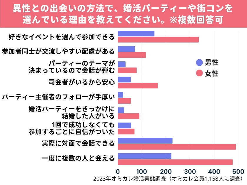 今回のオミカレ婚活実態調査では、オミカレ会員を対象に「あなたが婚活パーティーを選んだ理由」の意識調査を実施し、1,158人より回答を得ました。