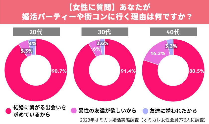 調査【あなたが、婚活パーティーや街コンに行く理由は何ですか?】1位は「結婚に繋がる出会いを求めているから。」真剣婚活者の84%から選ばれる結果に!(オミカレ婚活実態調査)