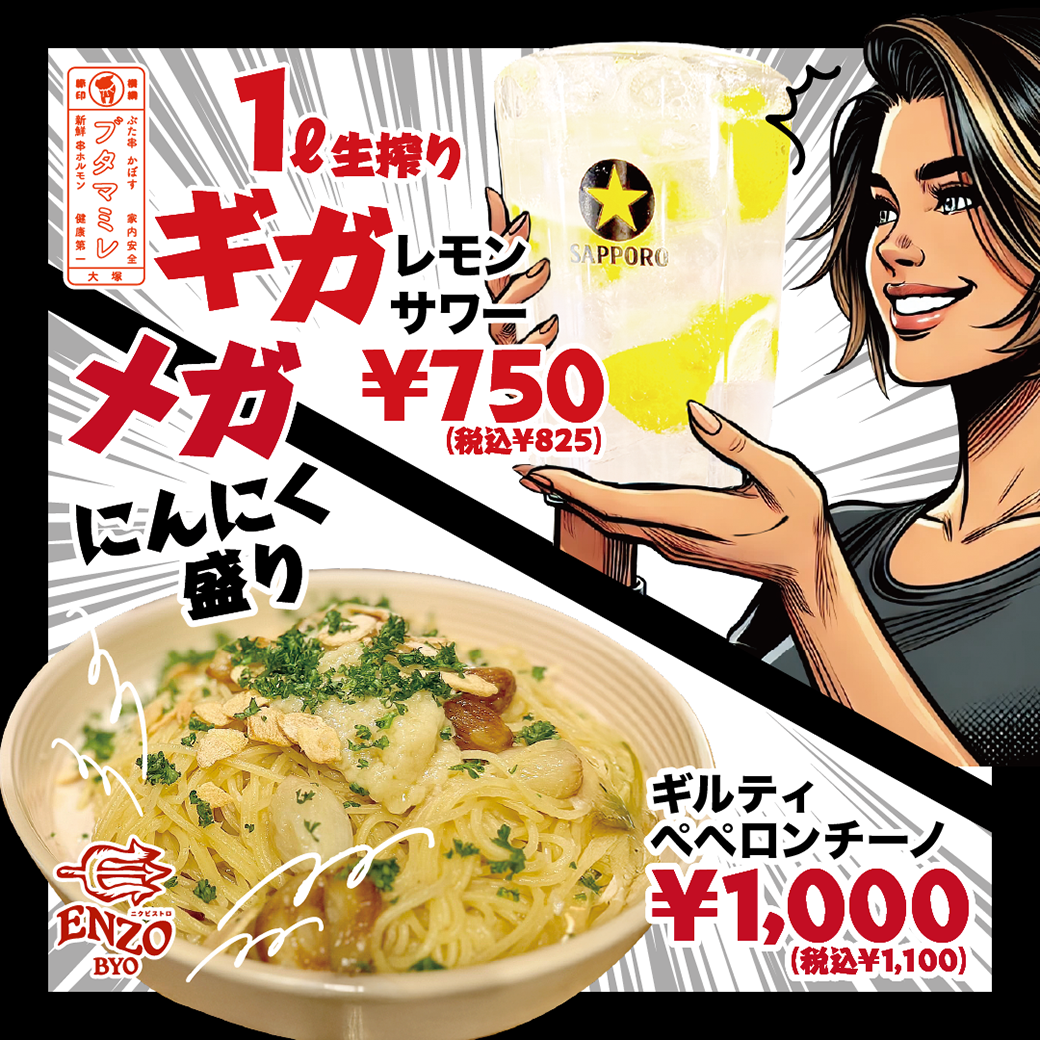 1ℓ!生搾りギガレモンサワー 825円(税込)