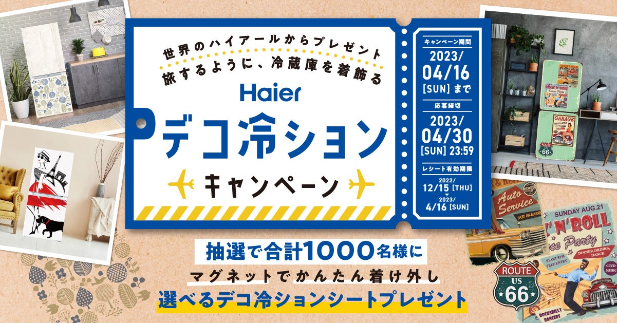 ハイアールジャパンセールス株式会社(本社:大阪市、代表取締役社長:杜 鏡国)は、キャンペーン期間内に対象の冷凍冷蔵庫をお買い上げいただき、ご応募いただいた方の中から抽選で合計1,000名様に、海外インテリアのように部屋をお洒落に演出できる、マグネット式シートが当たる“旅するように、冷蔵庫を着飾る”「ハイアール デコ冷ション」キャンペーンを実施いたします。