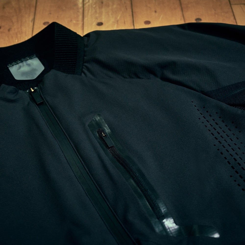 上位モデルの3品番は「動的保温」をコンセプトに、背中部分の特殊なメッシュ構造やレーザーカット仕様のベンチレーションなどの高通気構造に加え、保温性に優れた素材を適所に配置することで、運動時のムレを効果的に逃がしながら、衣服内環境を整え温かさを保つことを追求しています。