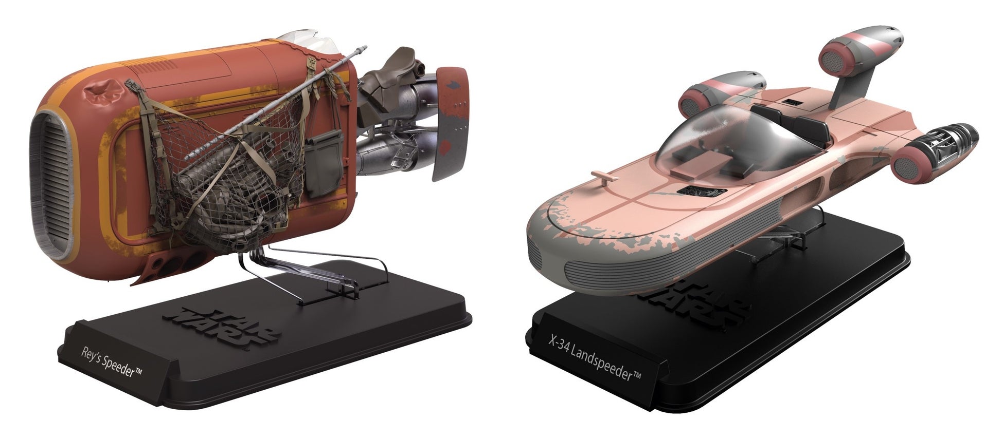 スター・デストロイヤーや戦艦などの大型軍用船に、スターファイターや爆撃機、さらに貨物船や輸送機、シャトル機に加えて、地上や危険地帯で活動するスターシップやビークルが登場します。映画シリーズだけでなく、『スター・ウォーズ:クローン・ウォーズ』などのアニメに登場するランドスピーダーやスピーダーバイクといった、リバルサーリフトを搭載したビークルもファン必見です。