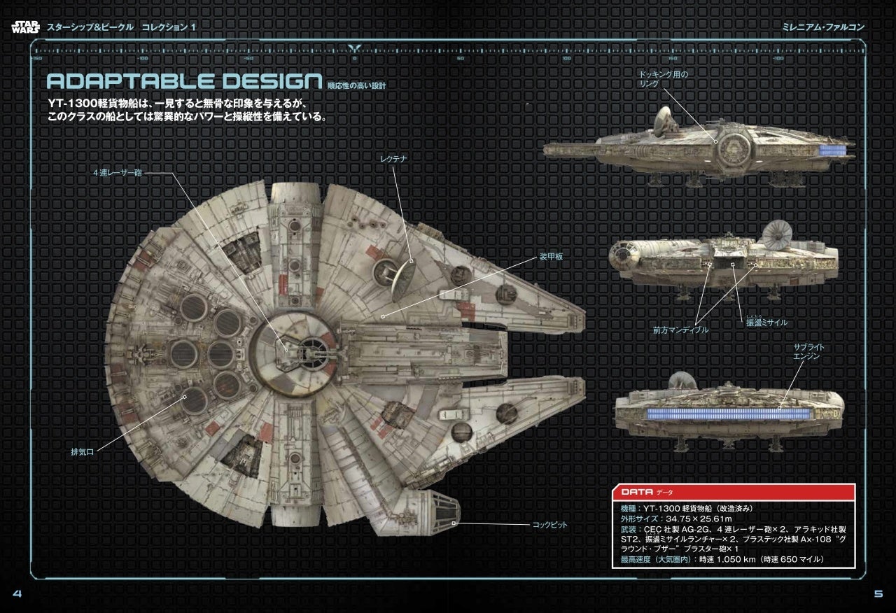など、この章では毎号、各艦船の情報に加えて、銀河に存在する数多くのスターシップをカテゴリー別に分類した図解ガイドを「スター・ウォーズ」ファンに提供します。