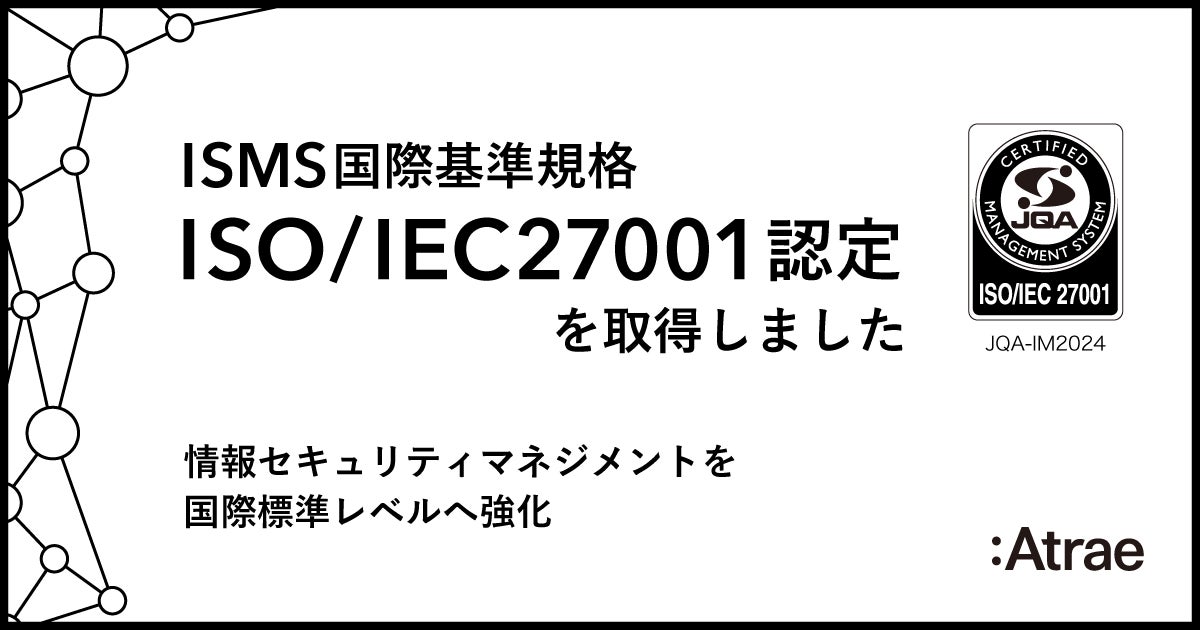 【アトラエ】ISMS国際標準規格「ISO/IEC27001」認証を取得