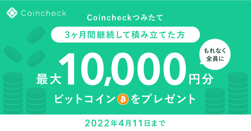 【最大1万円!】Coincheckつみたて、BTCプレゼントキャンペーンを開催
