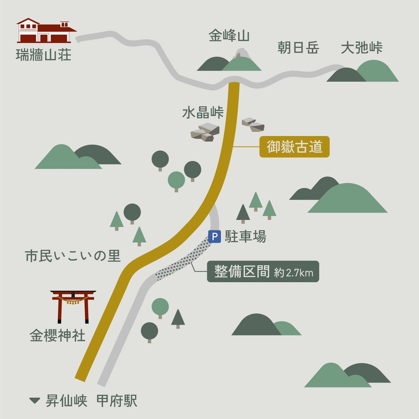 イーデザイン損害保険株式会社(本社:東京都新宿区、取締役社長 桑原 茂雄、以下「当社」)は、当社が参画する「金峰山古道復活プロジェクト」(https://ande-mtkinpu.yamap.com)において、クラウドファンディングの寄付金と当社の支援によって着工した林道整備工事が完了し、10 月18 日(金)に開通することをお知らせします。 本プロジェクトは、当社が山梨県甲府市(市長 樋口 雄一、以下「甲府市」)、株式会社ヤマップ(本社:福岡県福岡市、代表取締役CEO 春山 慶彦、以下「ヤマップ」)、金峰山を愛する登山者の会と連携し、金峰山に至る御嶽道(みたけみち)に繋がる林道を整備するために取り組みました。林道完成を記念し、10 月18 日(金)に甲府市役所にて、林道開通式を実施します。