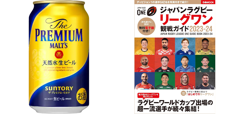 3つのファンコミュニティが連動!サントリー『ザ・プレミアム・モルツ』と『ジャパンラグビー リーグワン 観戦ガイド 2023-24』のセットを抽選で50名様にプレゼント。キャンペーンは1月31日まで。