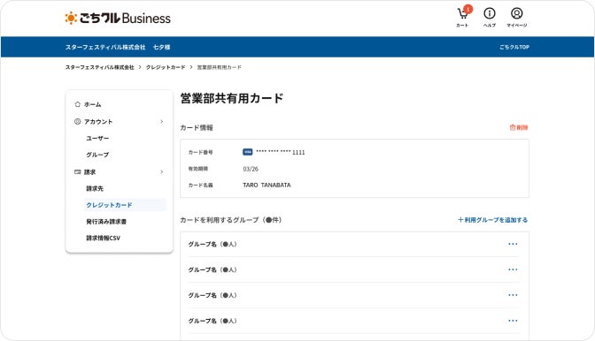 コーポレートカードを設定すると、複数の従業員がご注文時にそのカードを選べるようになります。ユーザー権限を3種類に分類することができ、オーナーと管理者がクレジットカード情報の管理をすることができます。 グループごとに異なるカードを設定することもできます。